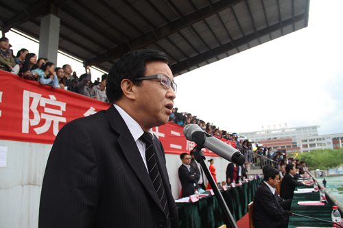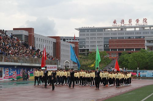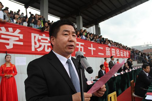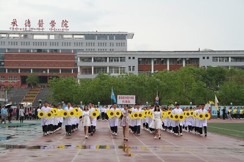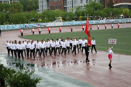 运动是一切生命的本源,身心健康、体魄强健是一个国家综合实力的重要方面。在这生机盎然的美好时节,2016年5月12日,我校第五十二届田径运动会在彩旗飘扬的体育场隆重开幕。我校党委书记刘永平、校长曹凯、副校长宋鸿儒、纪委书记张亚平、副校长谢利德、唐世英,各部、处、院、系主管学生工作的同志,校学生会代表、研究生会代表出席了开幕式。此次运动会我校近千名职工、学生运动员参加比赛。 12日上午8:30,运动会开幕式在国旗仪仗队的带领下隆重举行。伴着军乐团演奏的《运动员进行曲》,随着旗林队飞舞鲜艳的红旗,各参赛代表队(基础医学院2013本、基础医学院2014本、临床学院联队、中医学院、中药心理生物医学工程联队、护理学院一队、护理学院二队、研究生队、留学生队)依次入场。在全校师生的注目下,鲜艳的五星红旗冉冉升起,象征着此次运动会必将顺利进行。 副校长唐世英致开幕词。他首先代表校领导向为运动会顺利举行付出辛勤劳动的广大员工以及同学们表示衷心的感谢。他说,我校历年来非常重视体育运动的发展,并在体育教学、训练、比赛等方面不断取得优异的成绩,体育工作状态和运动水平一直处于省内同类院校前列,在2015年全国学生定向越野锦标赛上,我校女子代表队获团体第二名的佳绩,混合团队赛获得第七名,我校代表队被授予“体育道德风尚奖”,实现了体育竞技成绩和体育道德风尚全面开花,全面丰收。 为了使运动会顺利举行,他代表大会组委会向运动员、裁判员以及工作人员提出要求,并希望全体运动员用凌云的斗志、团结的力量去诠释奥林匹克精神,展现承医的风采,赛出风格,赛出水平。 运动员代表赵友辰、裁判员代表马腾分别代表全体运动员、裁判员宣誓。随后,团体项目表演以气势磅礴的《承医天骄》开场,气宇轩昂,铿锵有力,激昂的鼓声回响在整个操场。中医学院的太极拳表演如行云流水,将武术魂演绎得淋漓尽致。护理学院代表队的精彩表演实现了健美操、现代舞以及恰恰的完美结合,展现了90后大学生的青春与活力。基础医学院2014级的团体操以独特的形式,新颖的角度,为运动会增添一大亮点。 校长曹凯宣布承德医学院第五十二届田径运动会开幕。 本届运动会是对我校体育教学工作,师生体育素质和精神风貌的一次大检阅。更是对师生特长及运动风貌的大展示。全校职工、学生近千名参加了此次活动,使更多的体育爱好者参与其中,充分调动同学们的积极性,增强团体协作性。