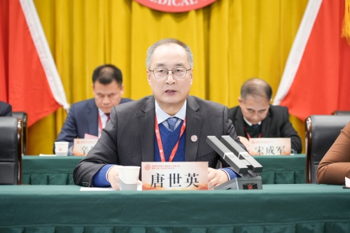 学校党委书记唐世英致闭幕词。在高度肯定此次大会的重要意义和丰硕成果的同时,为更好地贯彻落实大会精神,他提出四点意见:一是坚定不移把稳方向,在加强党的全面领导上达到新高度;二是凝心聚力聚焦内涵,在提升核心竞争力上实现新突破;三是锐意进取深化改革,在完善治理体系上激发新活力;四是持之以恒凝心聚力,在共建共享和谐校园上展现新作为。他强调,加快推进医科大学建设,学校面临的不仅是挑战,更是无限的希望。号召大家以此次双代会为新的起点,迅速将思想和行动统一到大会的决策部署上来,将智慧和力量凝聚到发展目标上来,坚定信心、埋头苦干,以“功成不必在我”的精神境界和“功成必定有我”的历史担当,奋力谱写学校事业高质量的崭新篇章,为教育强国、健康中国建设贡献我们的全部力量!