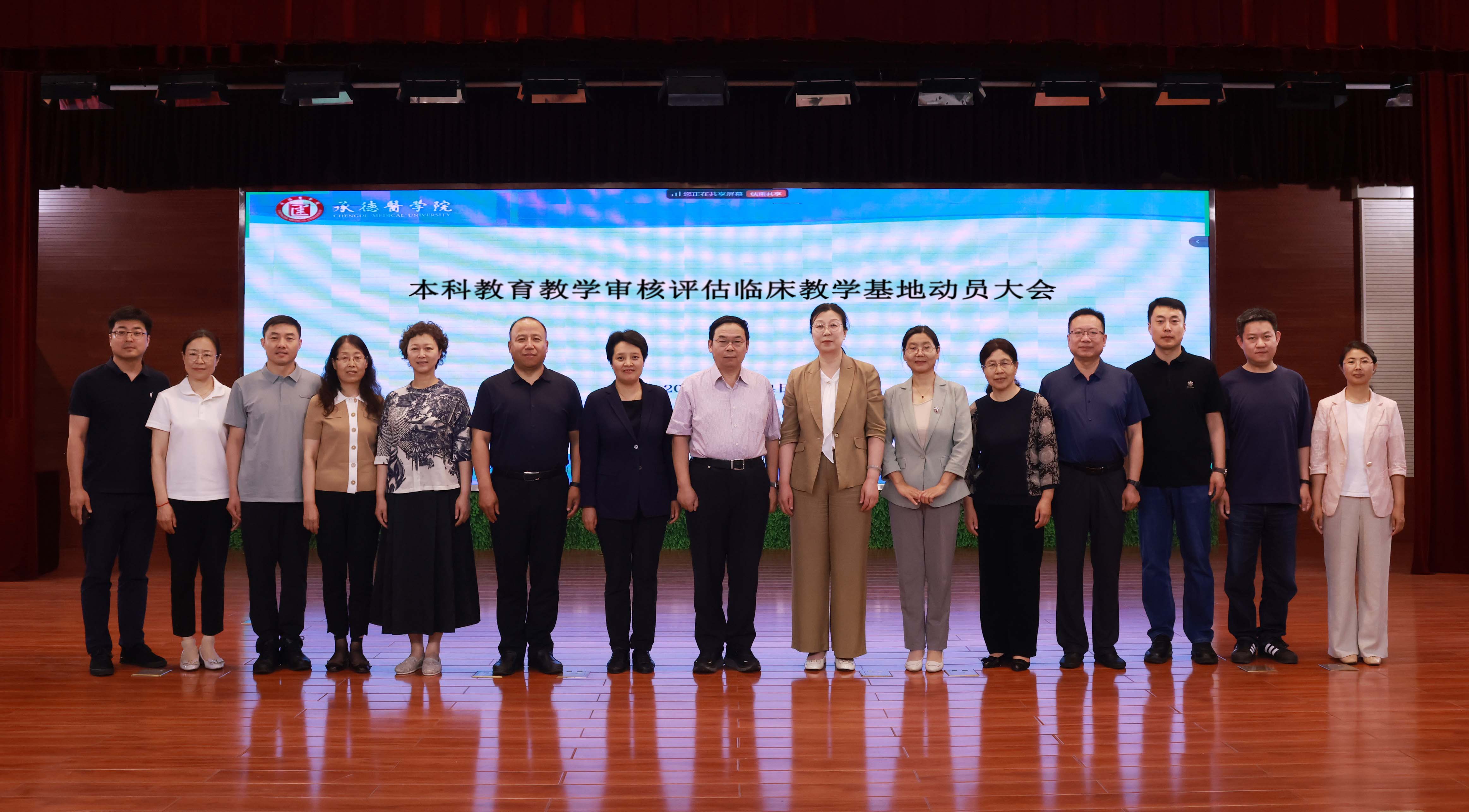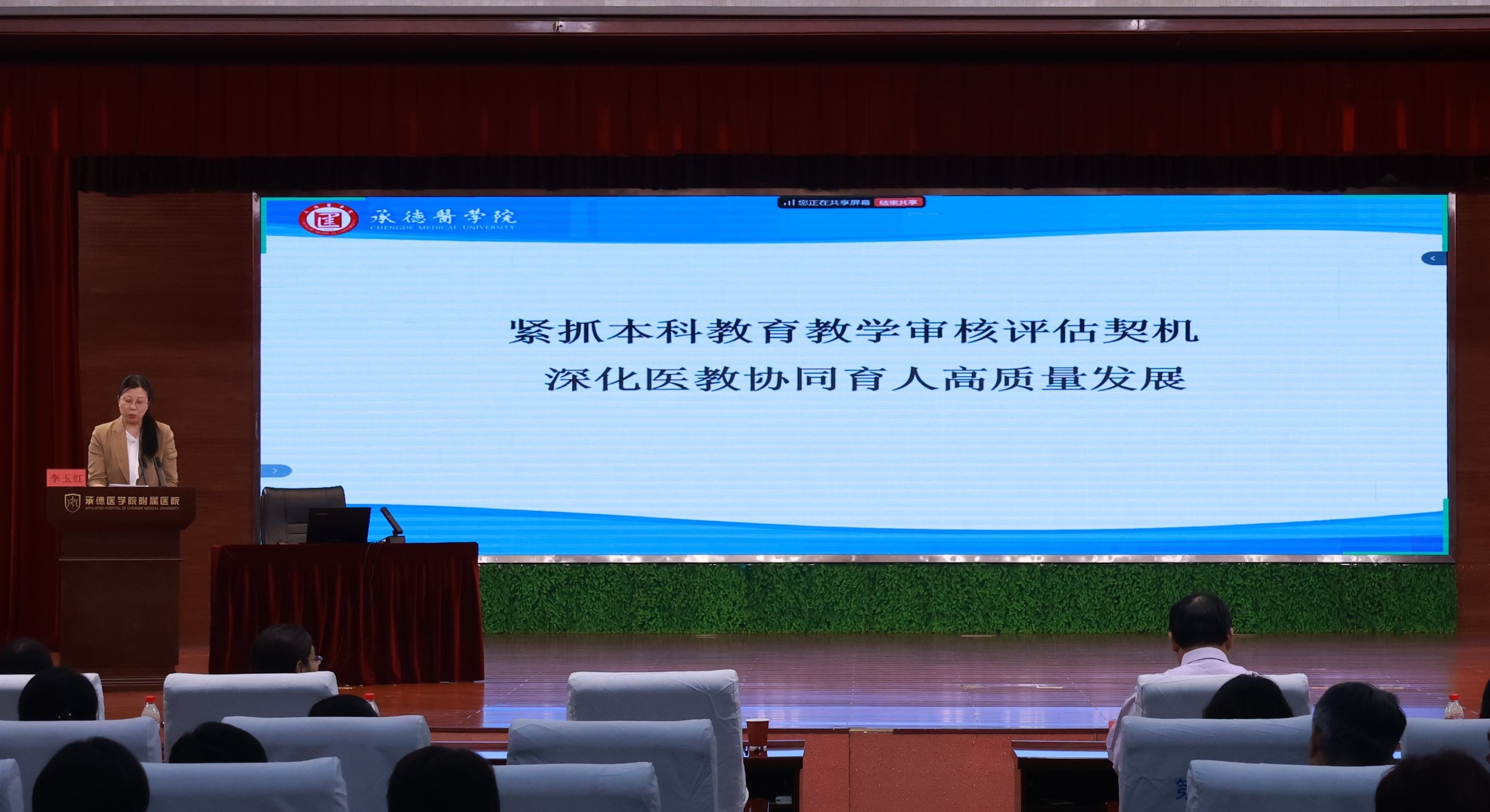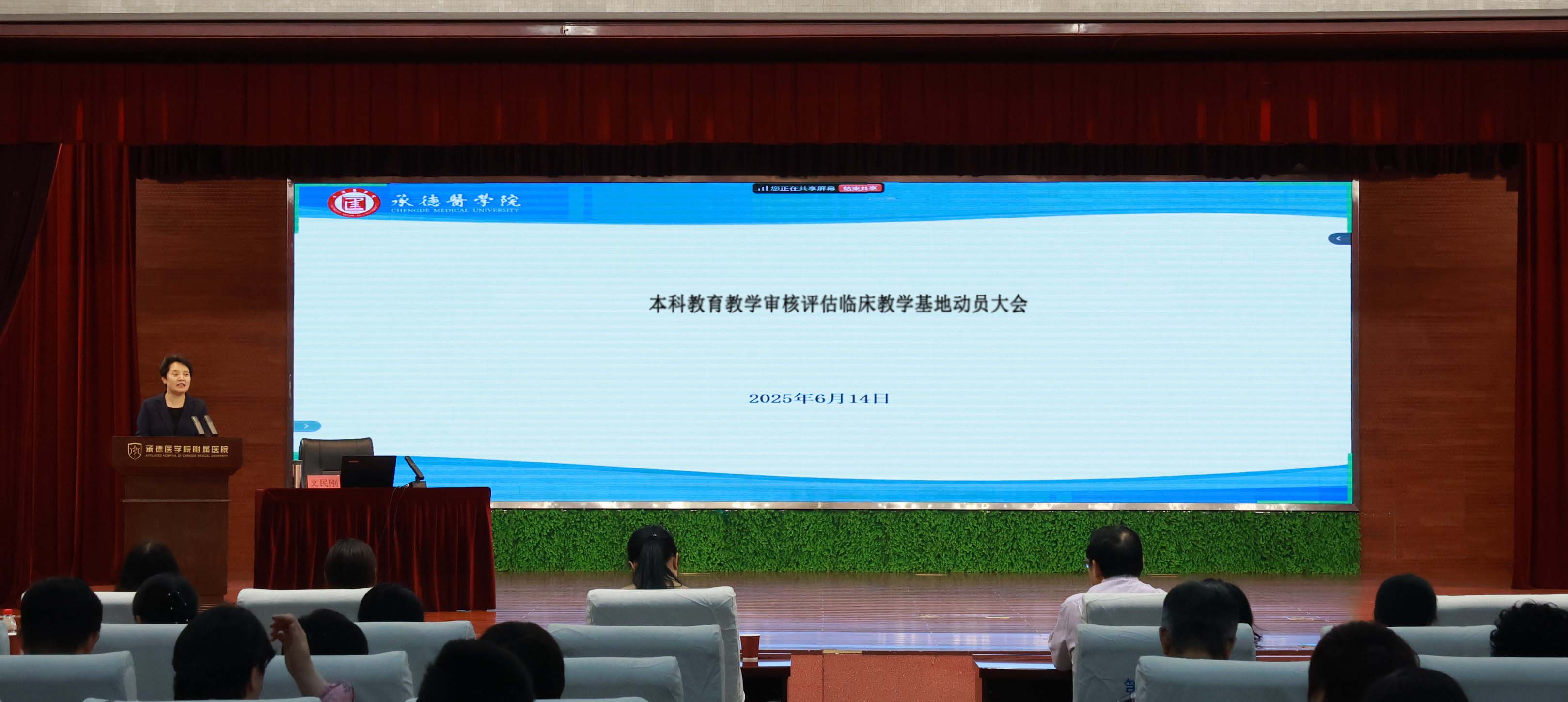 2025年6月14 日上午,学校在承德医学院附属医院召开“本科教育教学审核评估临床教学基地动员大会”。教育部审核评估专家、南方医科大学督学文民刚教授受邀开展专题宣讲培训。相关校领导、直属附属医院及附属承德市中心医院等多所承担高年级理论教学的临床医学类、中医学类专业教学基地领导班子、教育处负责人、教研室主任、秘书、骨干教师以及学校教务处、临床学院、校教学督导组等相关人员参加大会。校长李玉红教授出席大会。会议由学校副校长、承德医学院附属医院党委书记、院长孙瓅贤教授主持。 (点击每张图片即可查看原图)