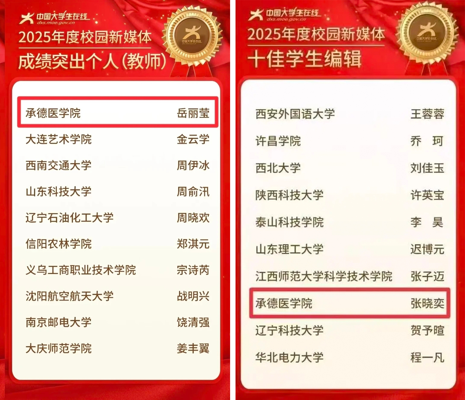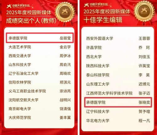 教育部中国大学生在线是由教育部主导、面向全国大学生的网络全媒体平台,其年度评选表彰活动是对全国高校网络思想政治工作和校园新媒体建设成果的集中检阅与权威认可。岳丽莹老师长期深耕校园新媒体运营管理与内容建设一线。主导策划了多个特色鲜明的新媒体项目,为讲好校园故事、传播立德树人正能量、构建清朗网络空间作出了积极贡献;张晓奕同学作为我校学生记者站的骨干力量,展现出卓越的新媒体素养与实践能力。其作品贴近校园生活,深受师生好评,展现了新时代大学生的良好风貌。值得一提的是,她是本年度河北省高校中唯一获此殊荣的学生编辑,为我校赢得了特别的荣誉。