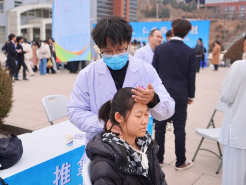 体验推拿按摩 本届国医节以“承经典·启新程·育英才——青年担使命·薪火传中医”为核心主题,开幕式后还将陆续举办中医药政策文化宣讲、导引术会操、中医方歌背诵、AI微视频大赛等系列活动。通过搭建多元化的传承与实践平台,进一步浓厚校园中医药文化氛围,锤炼学生中医专业技能,引导青年学子扛起中医药传承发展的使命,为学校医科大学建设和中医药事业高质量发展注入青春力量。
