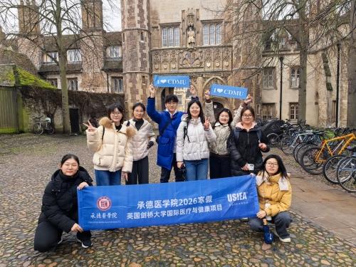 2026年2月1日至14日,承德医学院八位学子远赴英国剑桥大学格顿学院,参与了为期两周的国际医学与健康项目,在世界顶尖学府的课堂上,开启了这段难忘的跨洋研学之旅。 此次研学活动由学校国际教育学院于2025年10月启动,前期通过问卷调查了解同学们的出国意向,得到了热烈响应。经过英语水平筛选、面试及心理学测试等层层选拔,赵桐宜、何怡沛沛、马梦瑄、江昕芮、刘粟、梁珈毓、孙晔浩、刘琼蔓八位同学脱颖而出,成功入选。